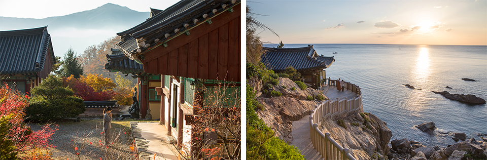 화엄사상을 표방하는 화엄사찰, 아미타 부처와 미륵부처의 세계를 그리는 정토사찰, 관음보살의 대자비를 간구하는 관음도량 등 입니다. 그중 관음성지는 관음신앙에 기초한 전통 가람 구성의 기본적 당우를 갖춘 자격의 사찰로 한국 불교를 대표함은 물론 세계적으로 뛰어난 가치를 지니고 있습니다.
