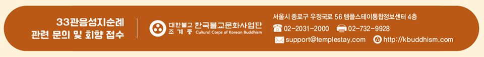 순례는 역사속의 성인을 만난다는 의미이자 그에 대한 경배의 과정, ‘나’를 찾아가는 성숙과 수행의 과정이며, 속세를 잠시 벗어나 성스러운 체험을 통해 다시 태어나는 정화(淨化)의 여정입니다. 관음성지순례를 통해 부처님의 대자대비하심을 느끼고, 자비로운 관세음보살님의 품 안에서 힘과 용기를 얻으시길 발원합니다.