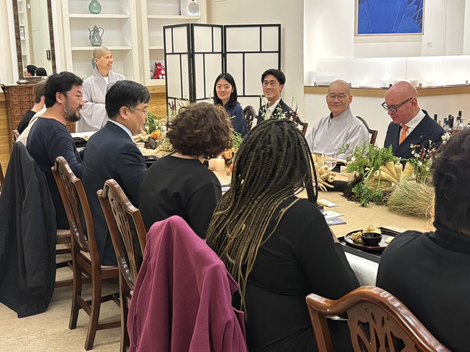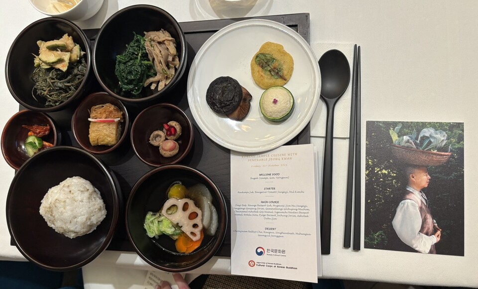 프랑스에서 만찬은 사찰음식 장인 여거스님이 준비했다. 제주 더덕에 대추·포도 유차청을 곁들여 한국식 샐러드인 ‘더덕 버무리’가 특히 인기였다. 참가자들은 “균형 잡힌 맛과 자연의 조화가 인상적이었다”고 소감을 밝혔다. 방송인 로랑 풀티에는 현지 라디오 프로그램에 이날의 사찰음식 경험을 소개할 계획임을 전했다.