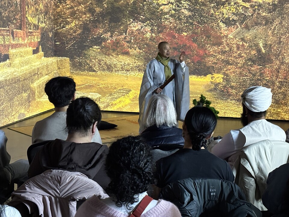 11월 1일 주영한국문화원에서 열린 정관스님의 ‘음식명상’ 은 한국의 정원 미디어 전시를 배경으로 하여 참가자들은 사찰로 이동한 듯한 평화와 긍정의 에너지를 나눌 수 있었다. 정관스님은 “음식은 마음을 담는 수행이며, 사찰음식은 맑은 정신과 온전한 나를 찾는 길”임을 강조하며 기후위기 극복, 자연보호, 생명존중의 실천을 현대 사회의 화두로 제시했다.