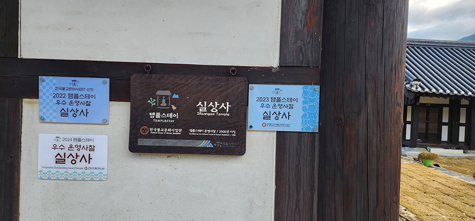 실상사 템플스테이관 입구에는 2022년부터 3년 연속 최우수 템플스테이 사찰을 인증하는 인증서가 붙어있다. 실상사 템플스테이의 신뢰와 위상을 보여준다.
